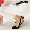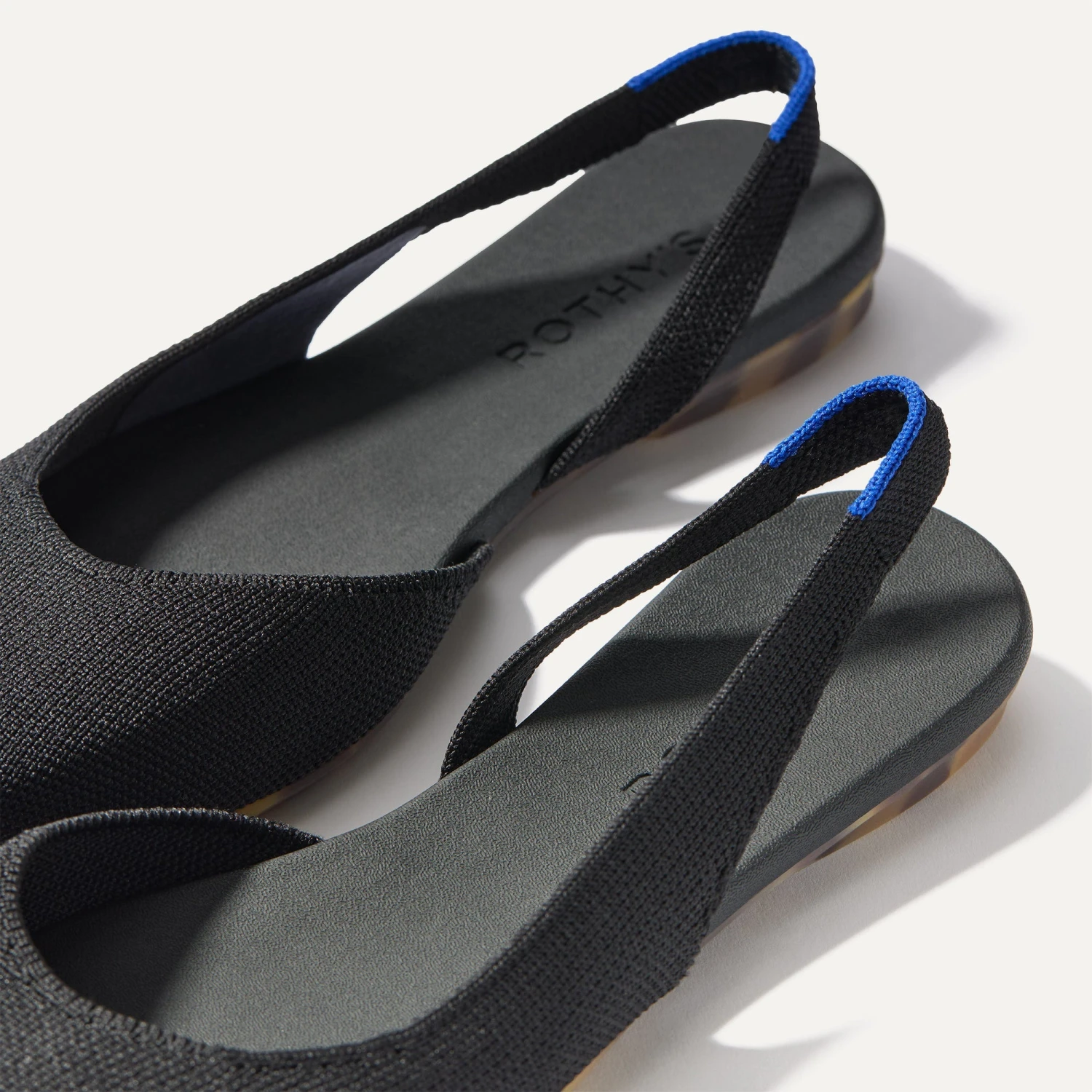 - Open-back style with a stretchy sling strap that hugs your heel.