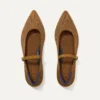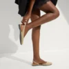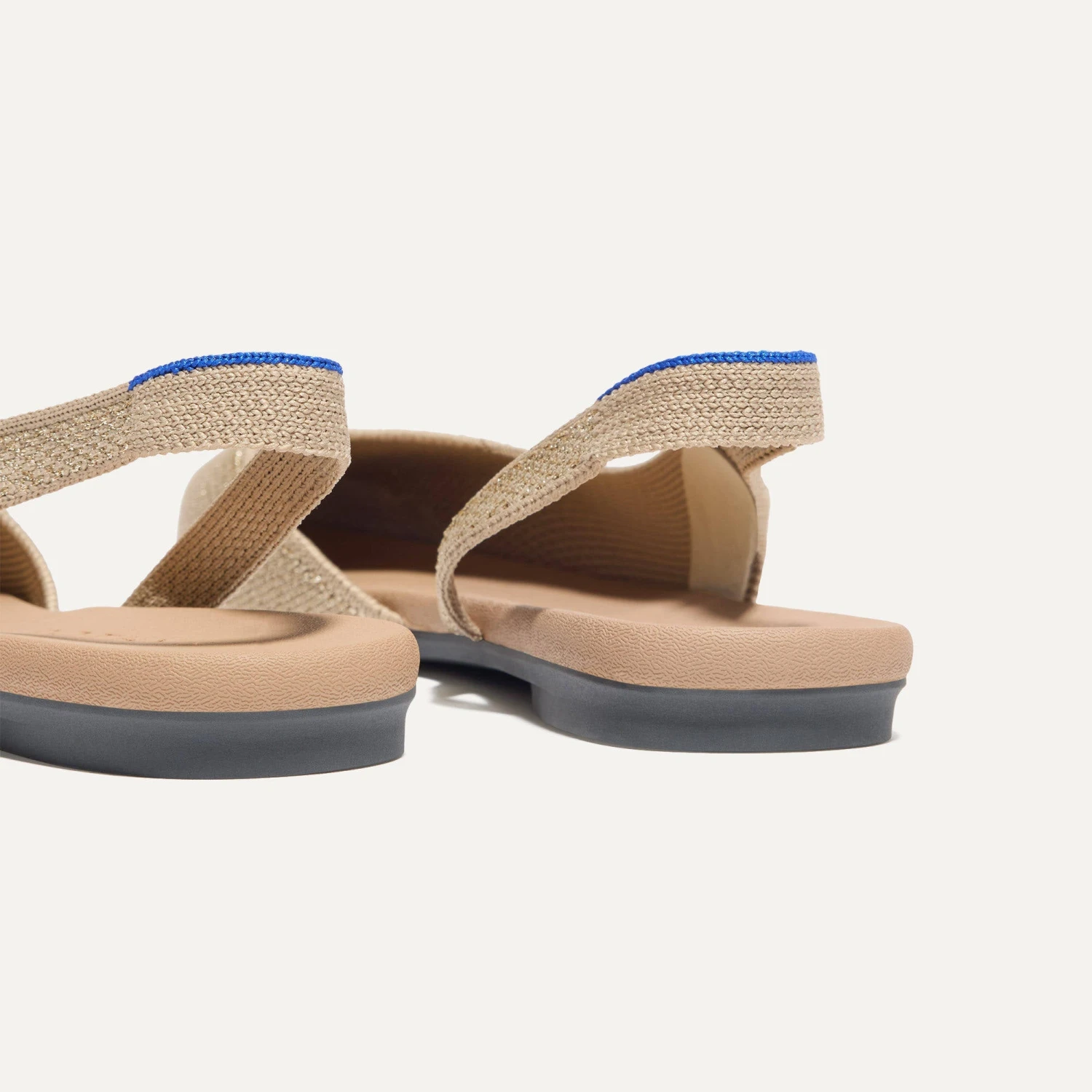 - Soft, flexible upper in a shimmery metallic champagne with an almond-toe profile.