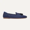 - Soft, flexible upper in dark navy with a charcoal tassel embellishment on the vamp.