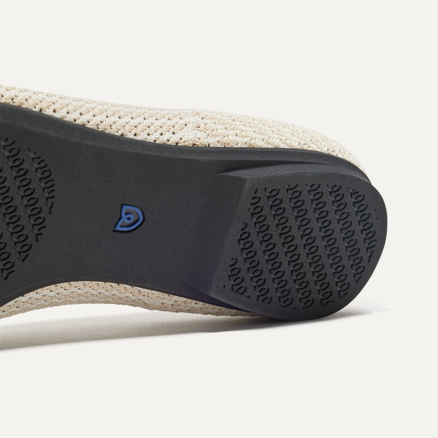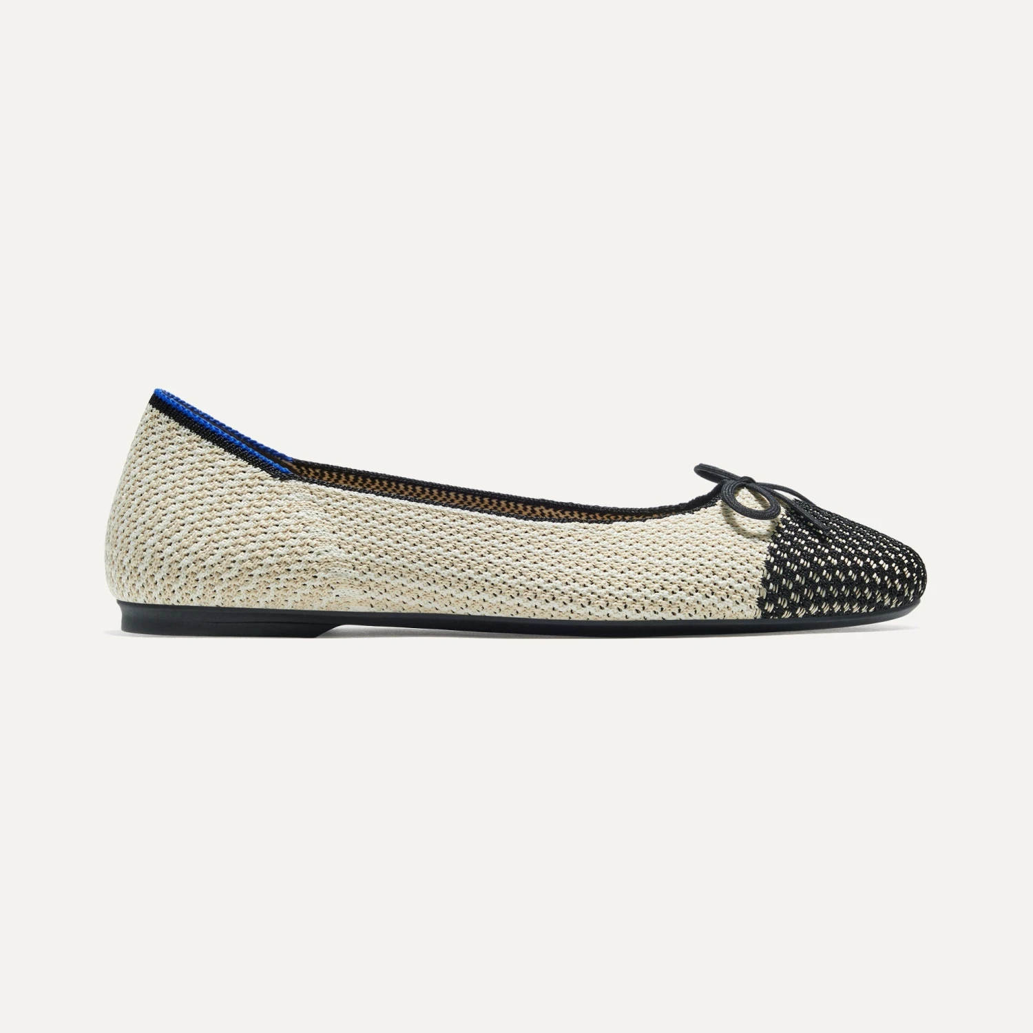 - Knit upper in cream and black tweed with a black captoe with a smooth, rounded toe box.