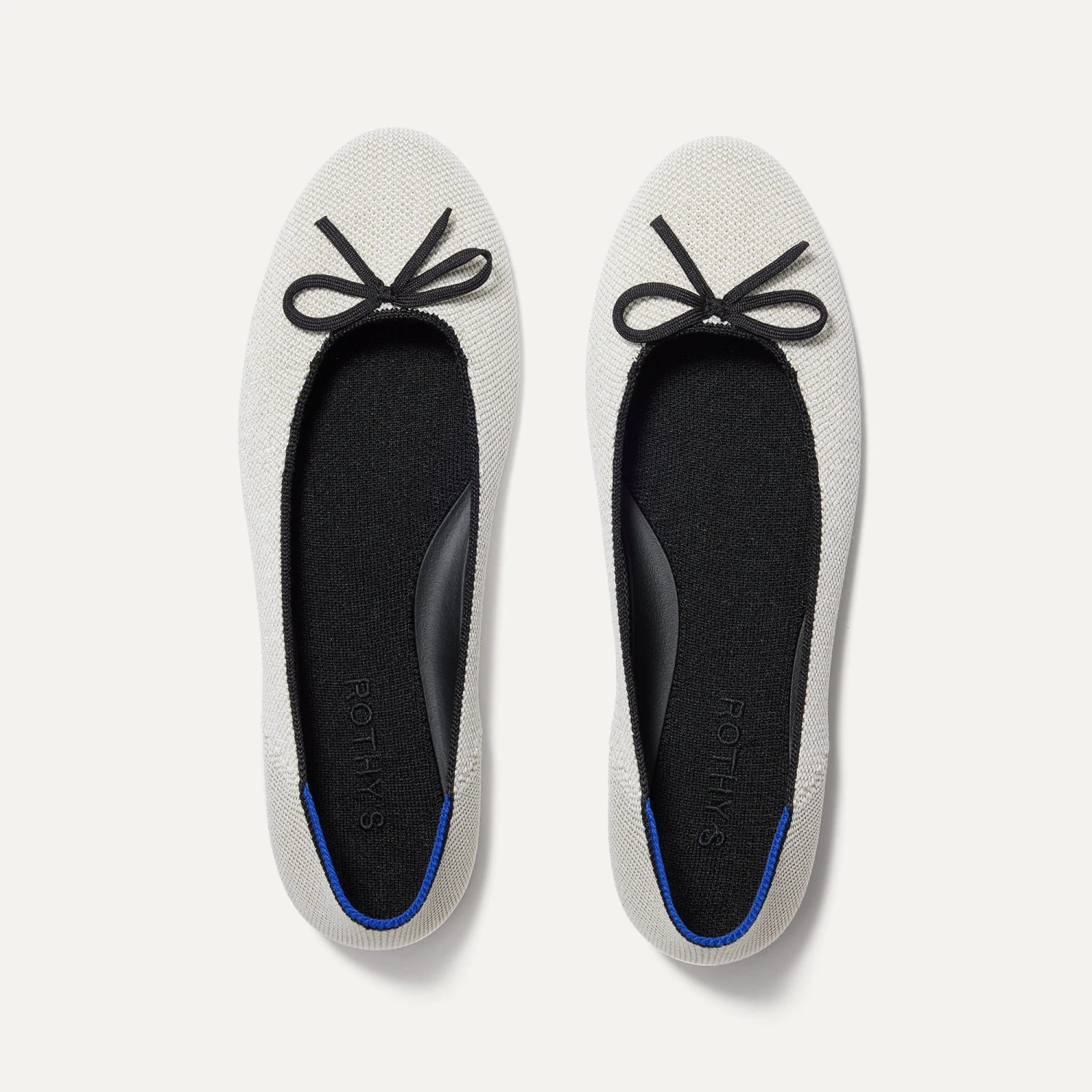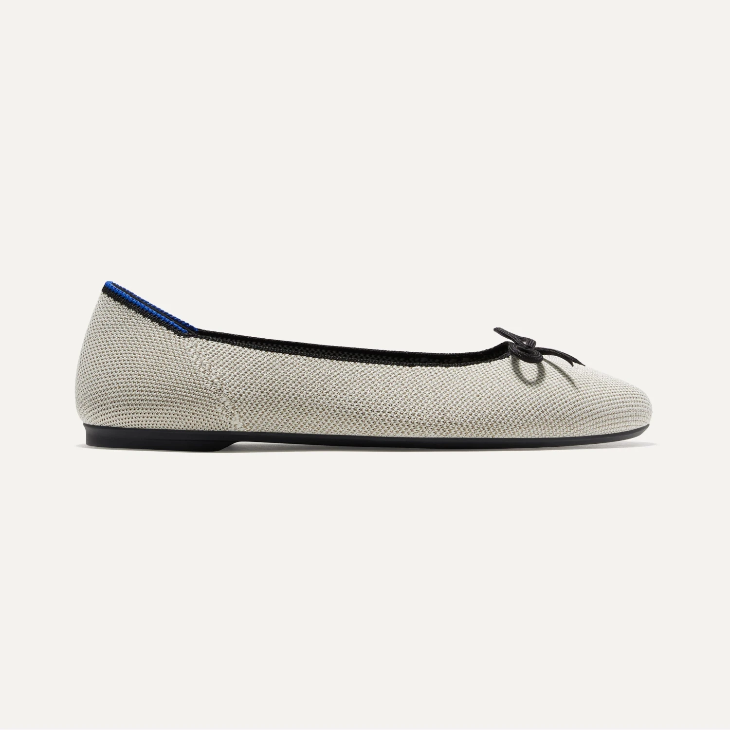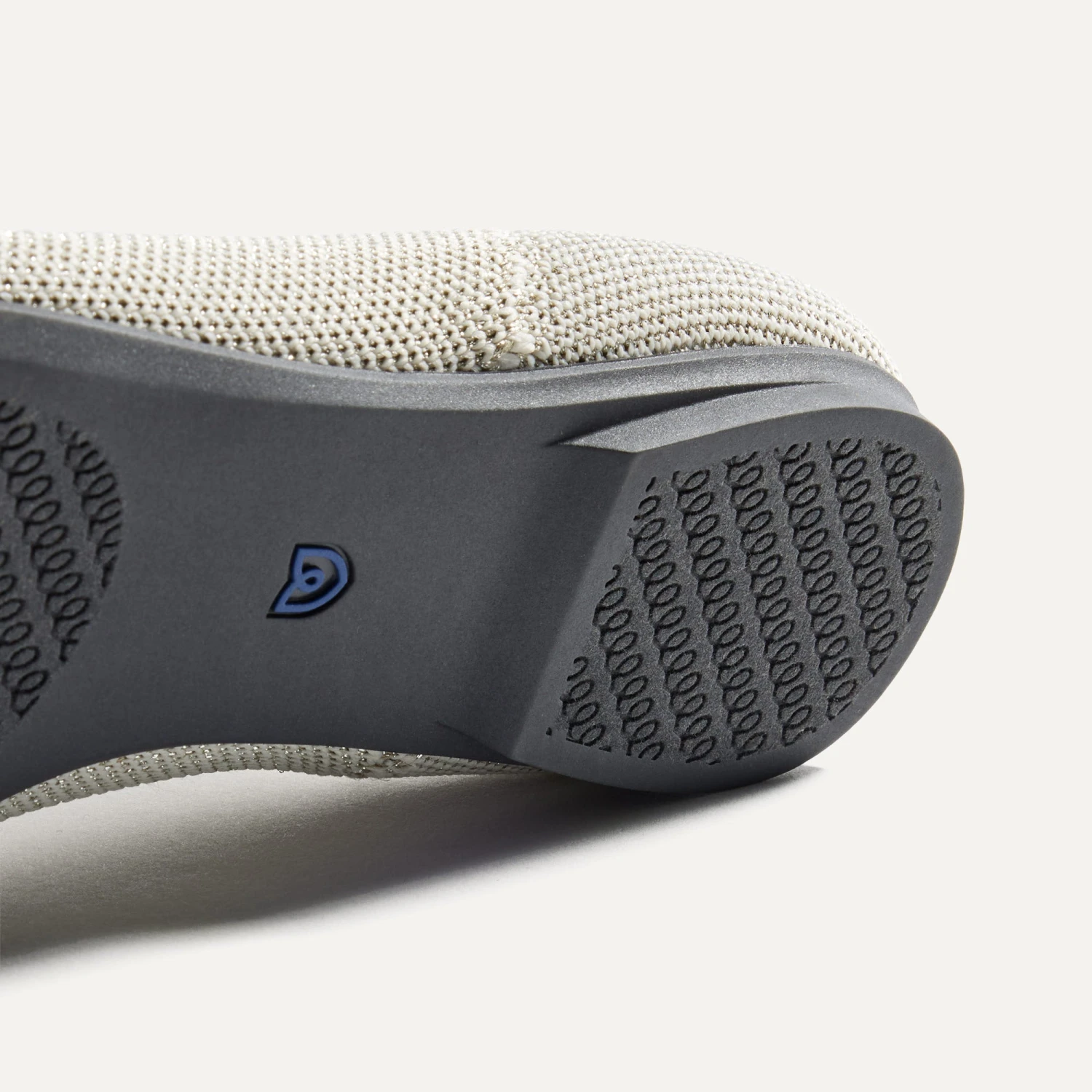 - Knit upper in a soft platinum shimmer with a smooth, rounded toe box.