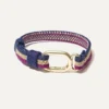 - Bracelet in shimmery metallic gold, navy and dark purple stripes.