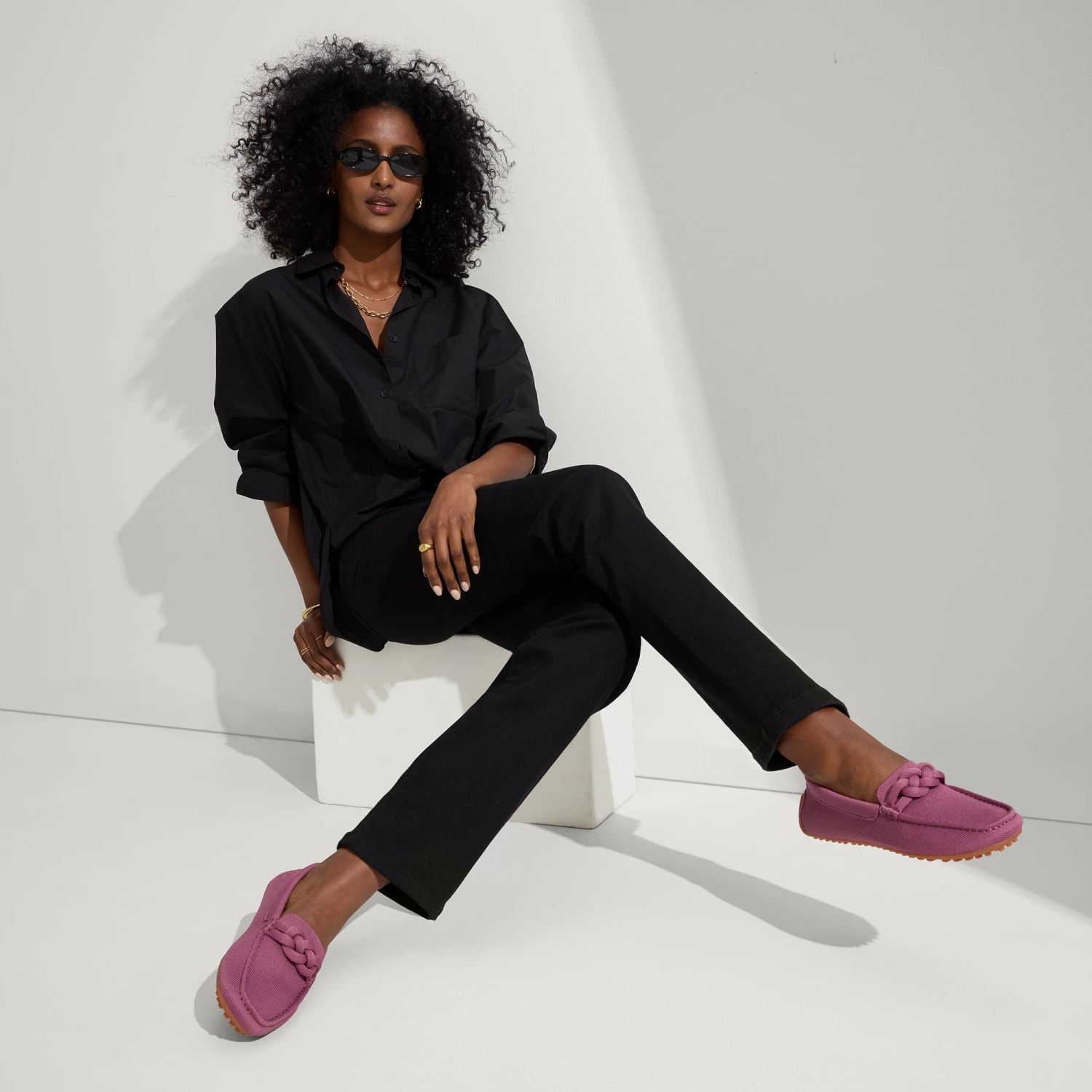 - Soft, flexible upper in soft mauve with a braid on the vamp.