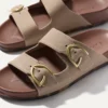 - Flexible, softly-knit upper with two wide straps in warm taupe.