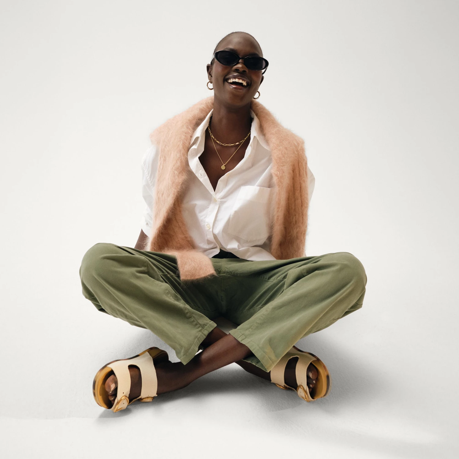- Flexible, softly-knit upper with two wide straps in ivory.