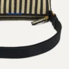 Sleek, slightly perforated design in khaki and black cabana stripes with a smooth zipper closure.