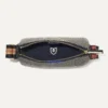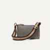 - Sleek design in a cream and black herringbone pattern with a smooth zipper closure.