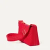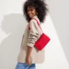 - Adjustable crossbody strap in red.