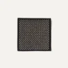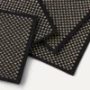 - Set of four coasters in a black and beige purl-stitch texture.