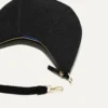 - Crescent shape, single-knit style in a black with black braided band.