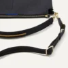 - Detachable, adjustable crossbody strap in muted black, with an elevated saddle stitch detail in camel.