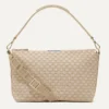 - Sleek design in a light brown basketweave pattern, with a smooth zip closure to protect your essentials.