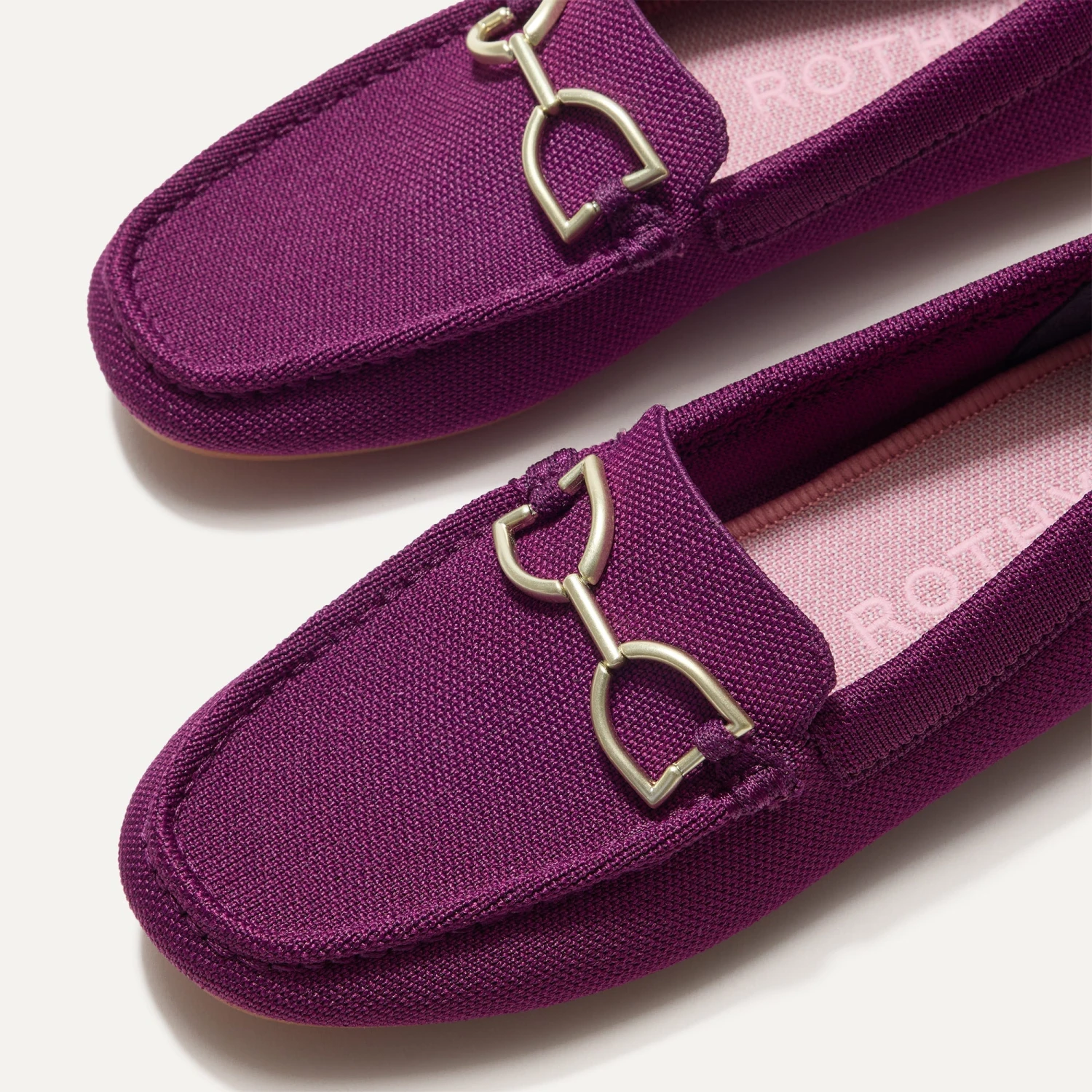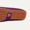 - Soft, flexible upper in deep purple with a gold hardware signet bit on the vamp.