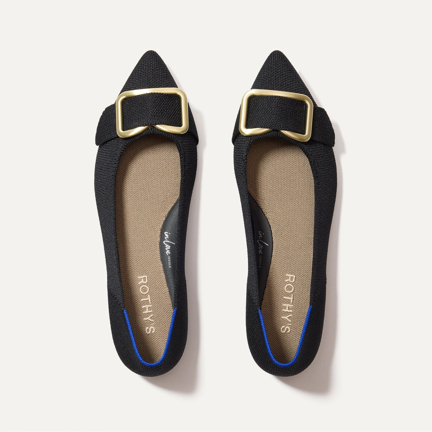 - A signet-inspired embellishment and strap on the vamp adds a luxe touch.