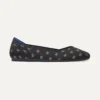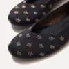 - Soft, flexible upper in black with a shimmery metallic daisy pattern.