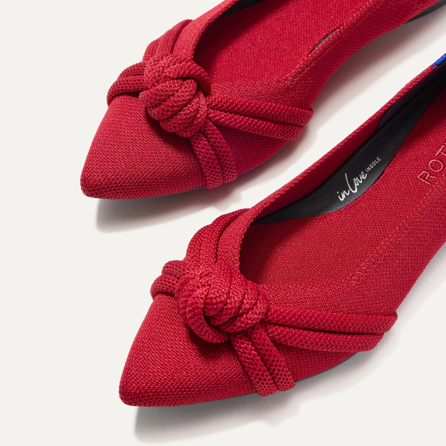 - Premium knit upper in bright cranberry with a knot on the vamp.