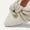 - Premium knit upper in soft platinum shimmer with a knot on the vamp.