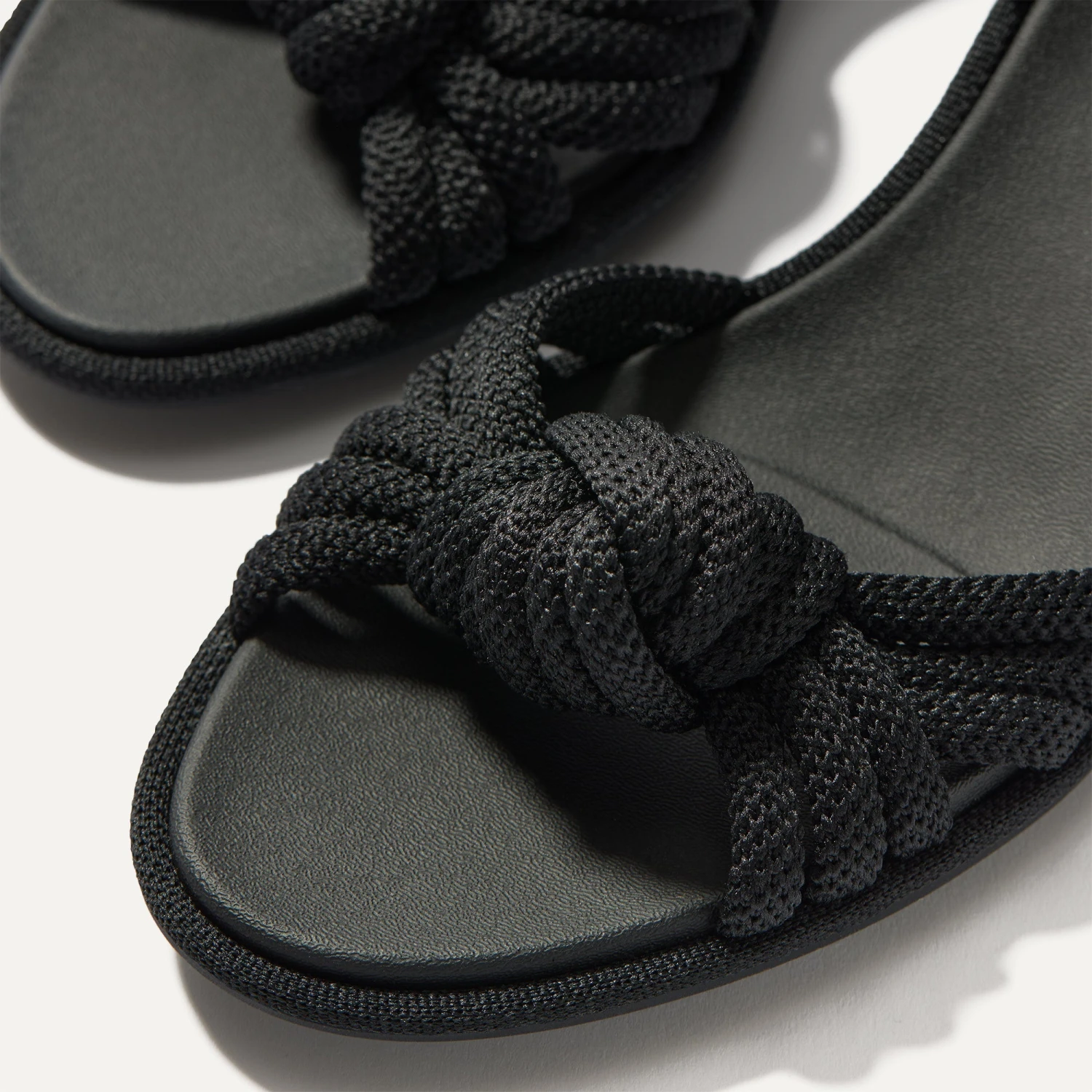 - Contoured, cushioned footbed and durable rubber outsoles in black for all-day comfort and wear.