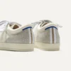 - Soft, flexible upper in a cream and platinum shimmer twill pattern.