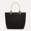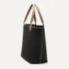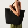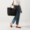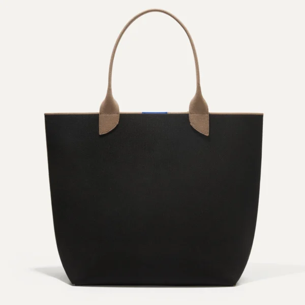 - Lightweight, flexible design in black, with durable top handles in cool earthy brown that comfortably fit over the shoulder.