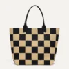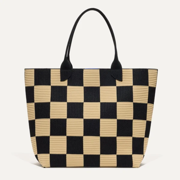 - Lightweight, flexible design in a black and beige checkered pattern.
