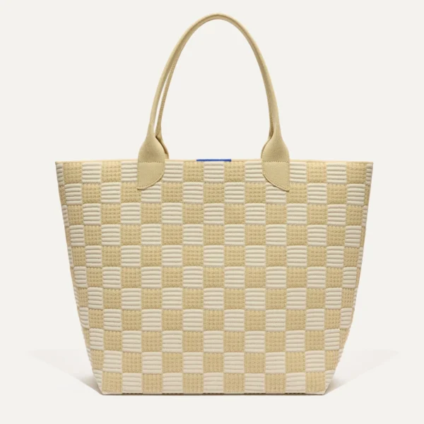 - Lightweight, flexible design in an ivory and beige checkered pattern.