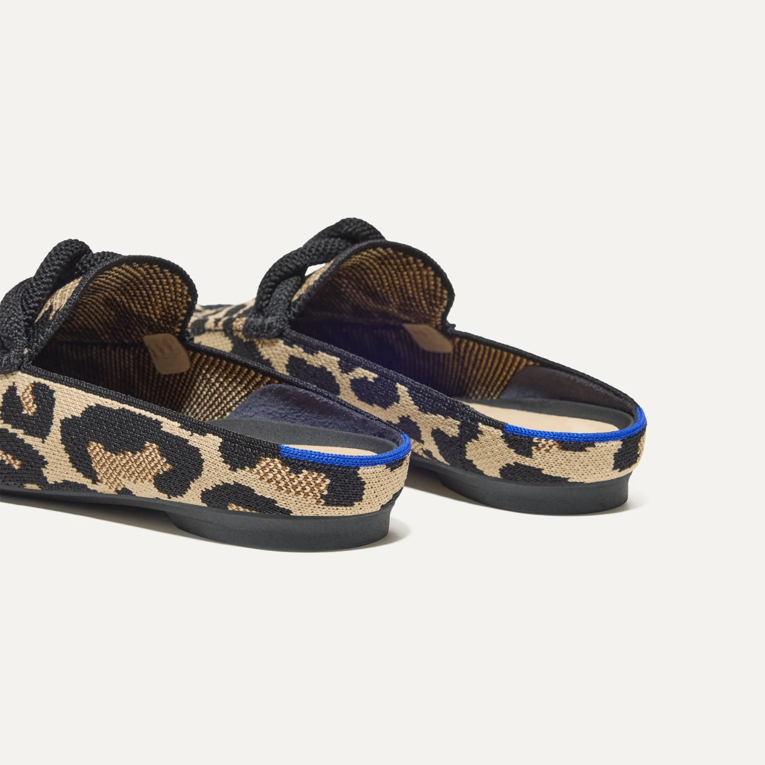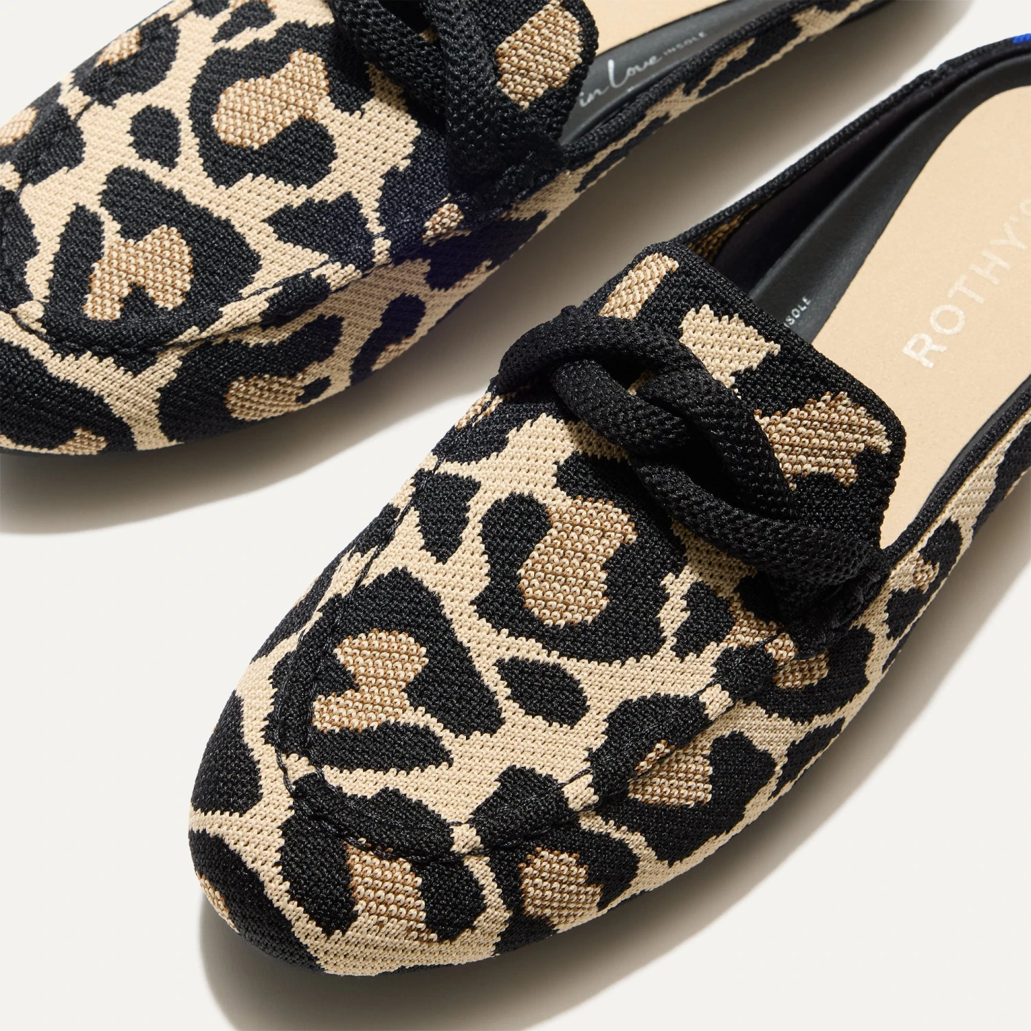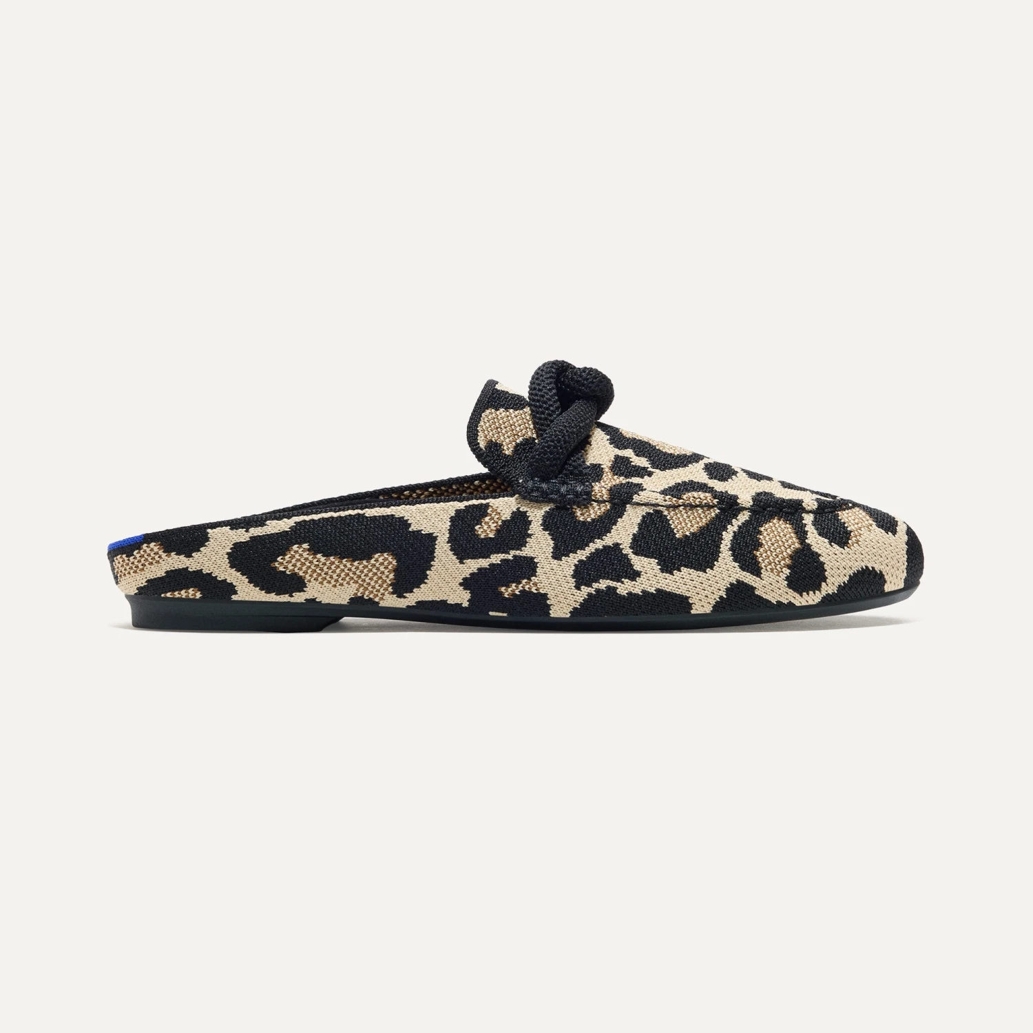 - Soft, flexible upper in a cream and black leopard print with a black knotted embellishment on the vamp.