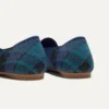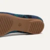 - Knit upper in a black and indigo plaid pattern, with a Venetian vamp and rounded toe box.