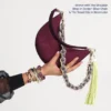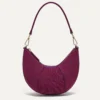 - Small, crescent shape style in a deep burgundy with burgundy piping.