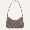 - Durable shoulder strap in a shimmery metallic taupe.
