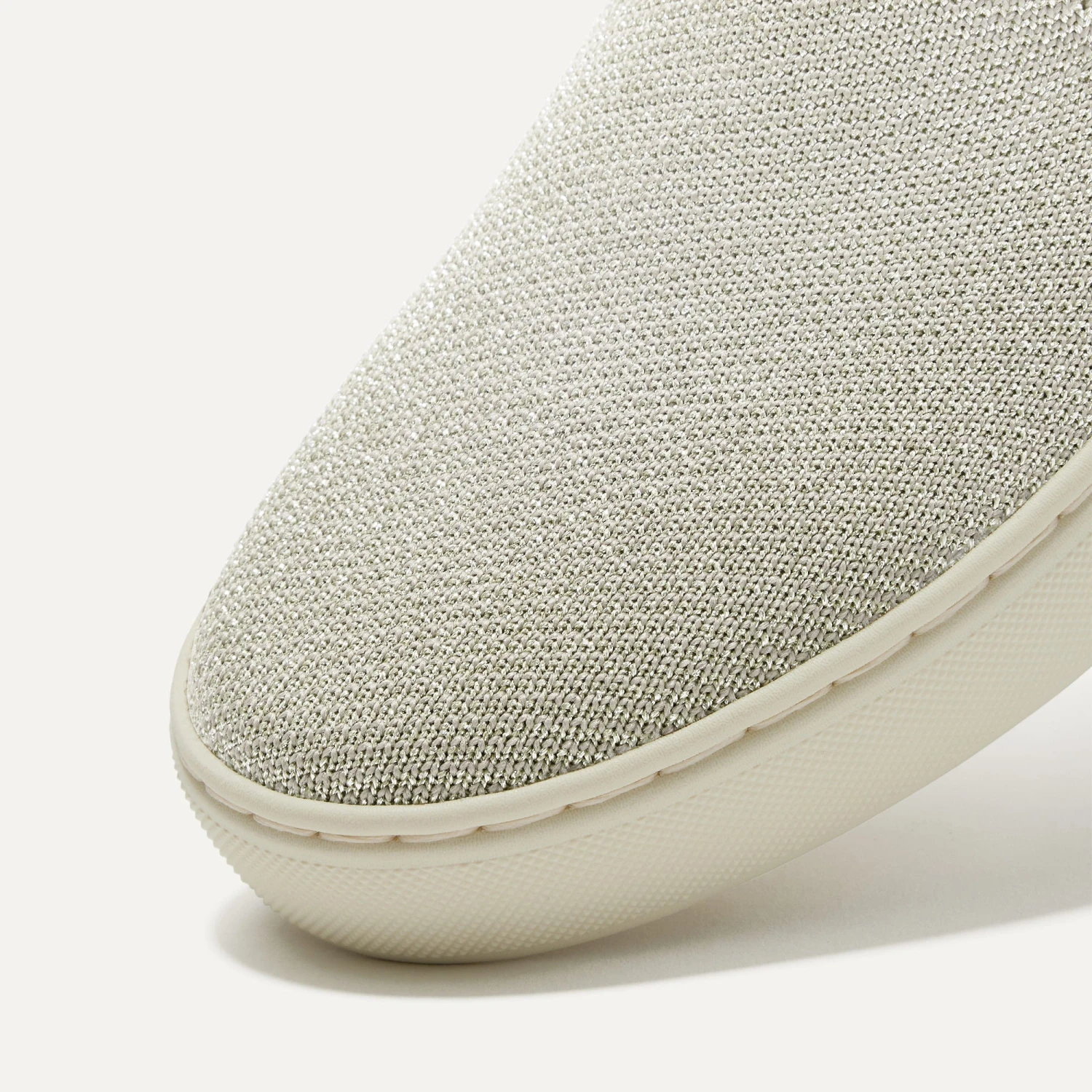 - Soft, flexible upper in a platinum shimmer twill pattern.