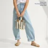 - Braided top handles in camel brown fit comfortably on your wrist or elbow.