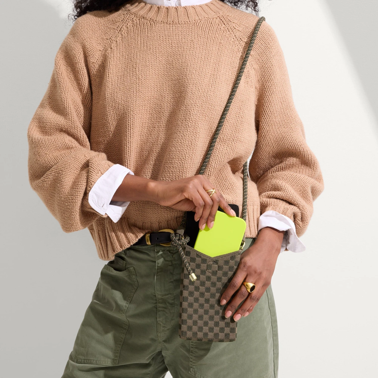 - Adjustable cord crossbody strap olive.