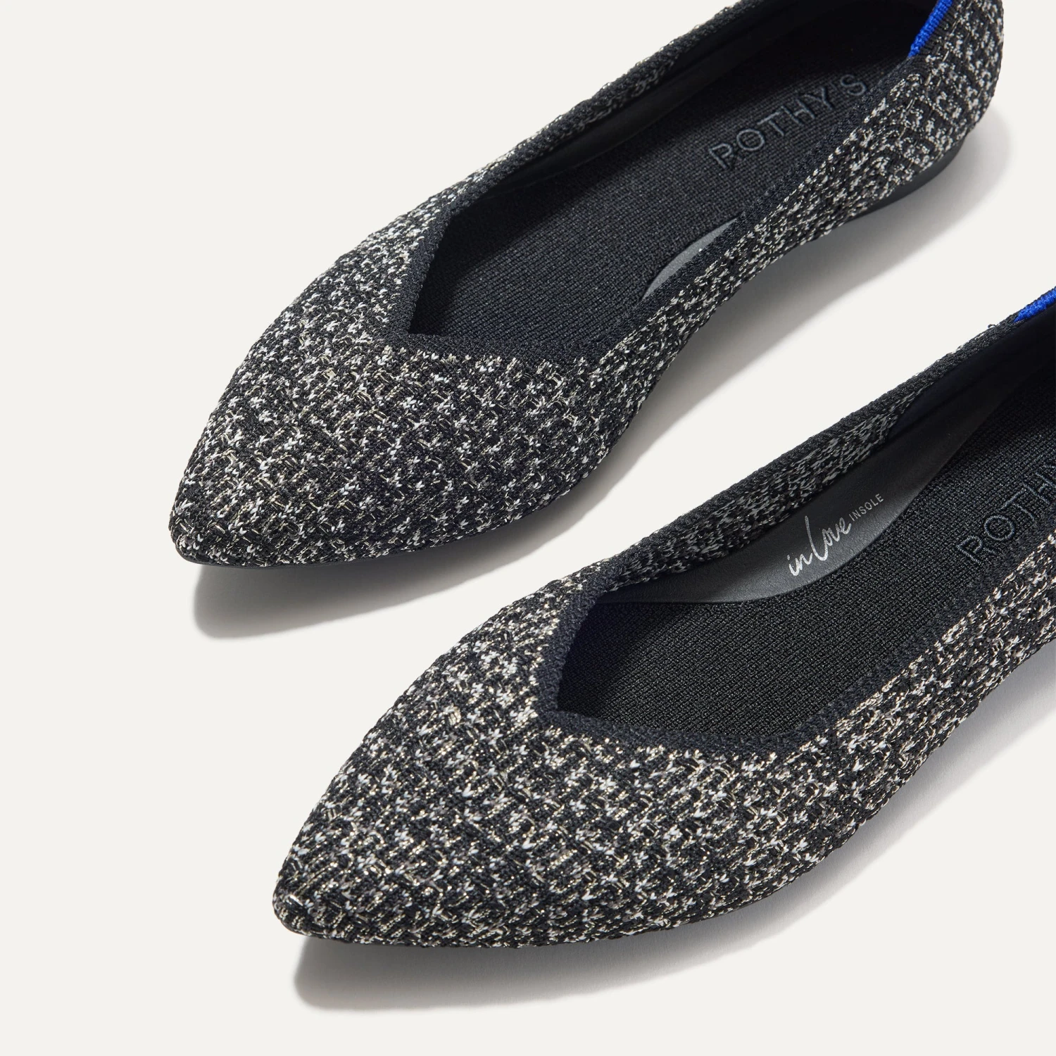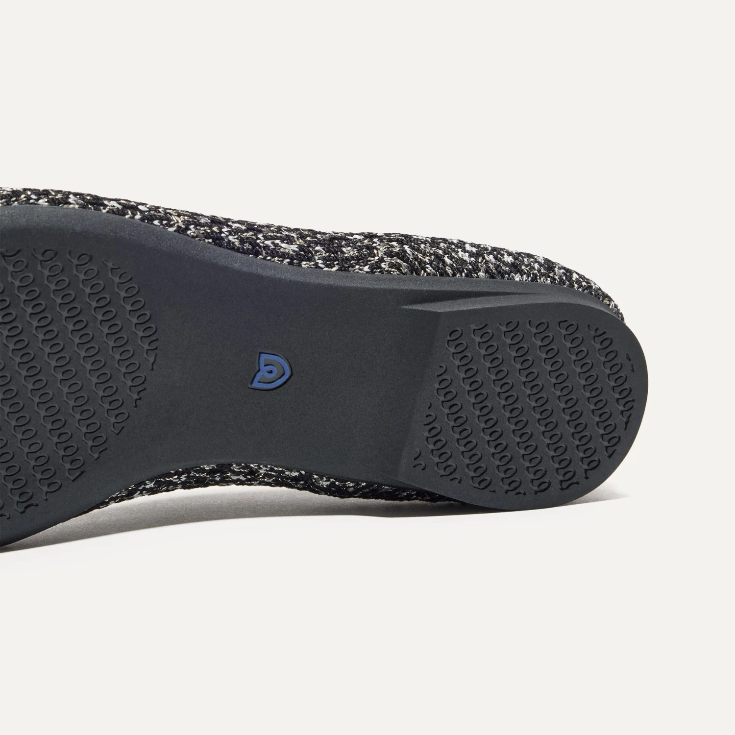 - Premium knit upper in a shimmery heathered black tweed pattern with a smooth, refined shape.