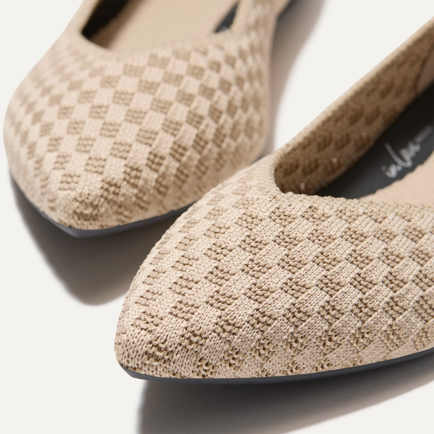 - Premium knit upper in a light taupe and ivory basketweave pattern with a smooth, refined shape.