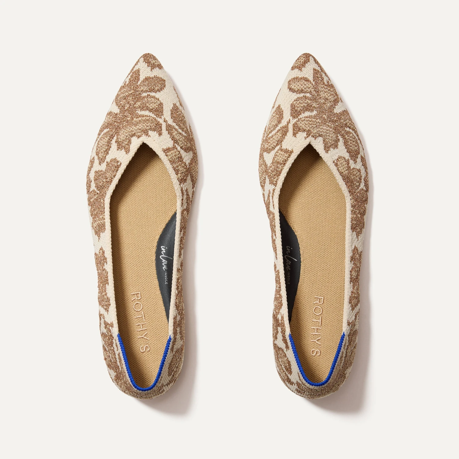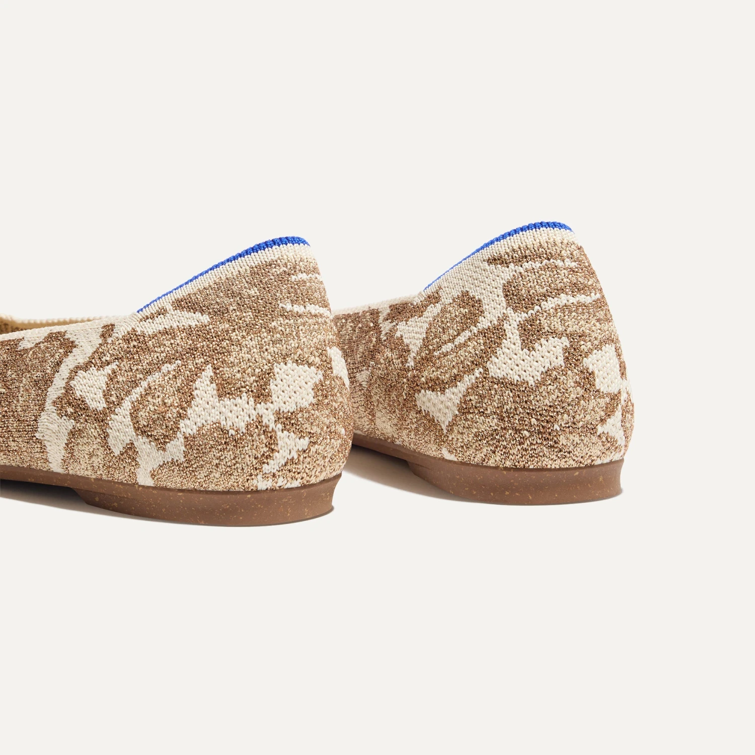 - Premium knit upper in a shimmery metallic gold and ivory floral pattern with a smooth, refined shape.