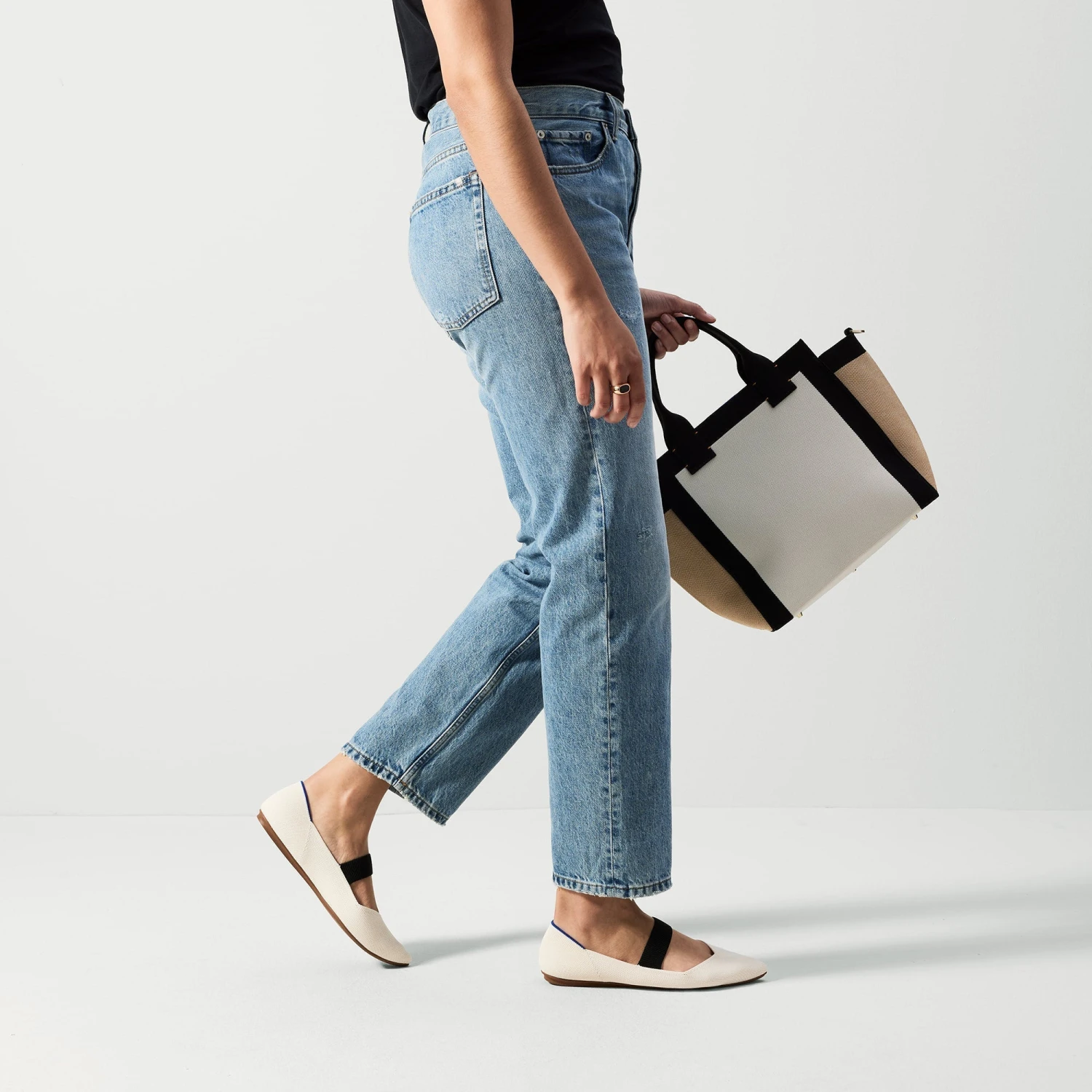 - Soft, flexible upper in cream.