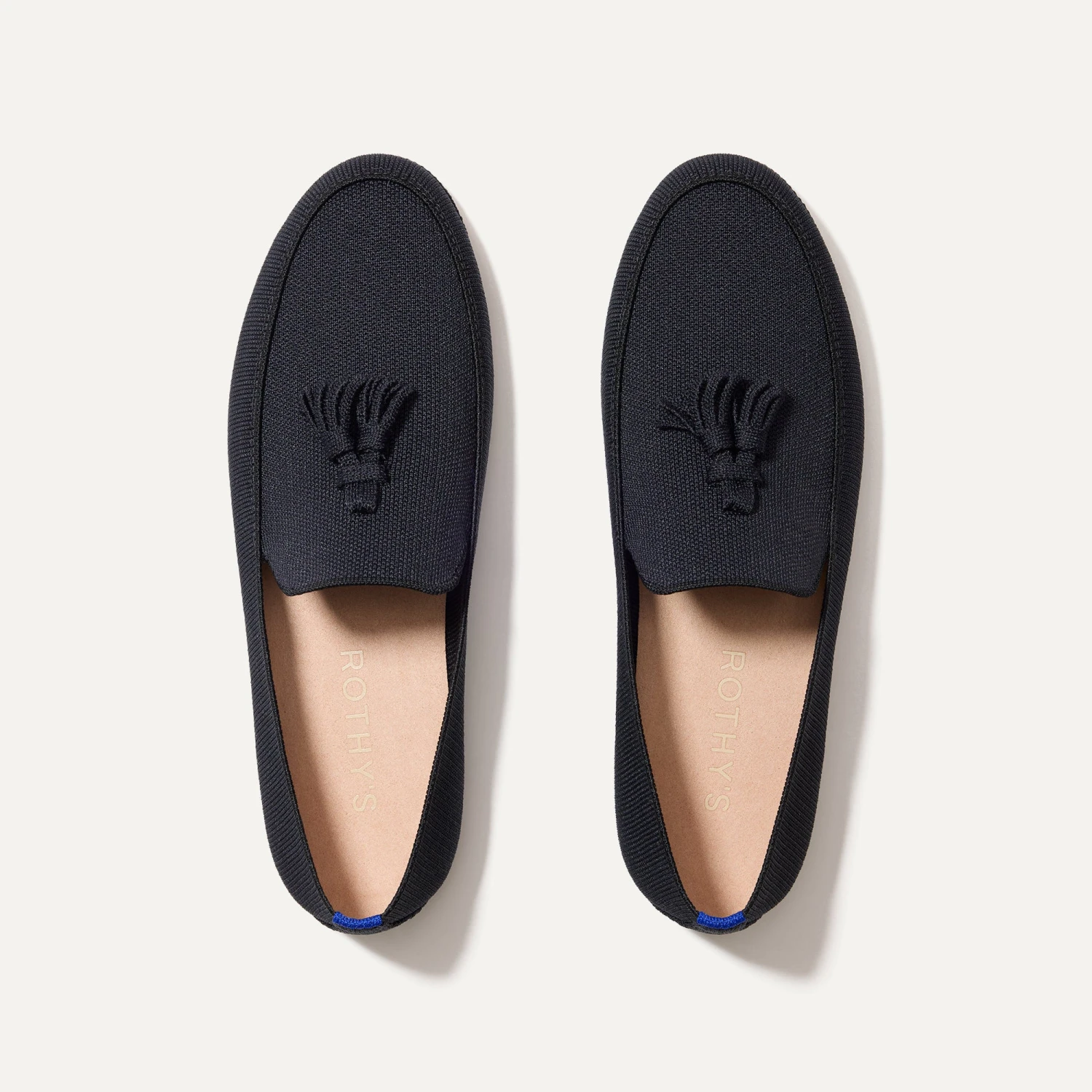 - Soft, flexible upper in black with a tassel embellishment on the vamp.