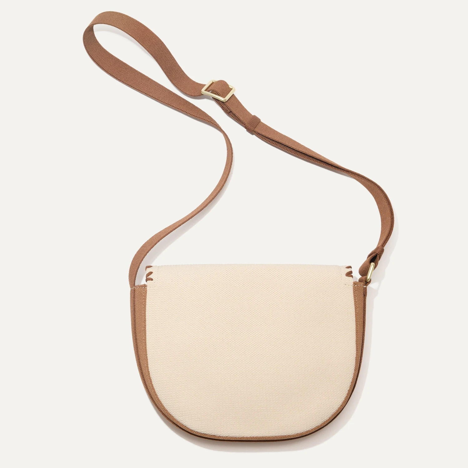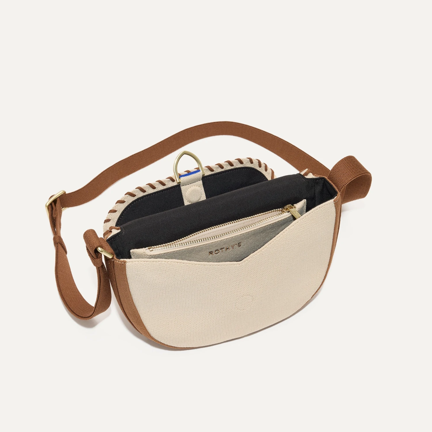 - Front flap features a whip stitch detail in brown and a signet-inspired magnetic closure.