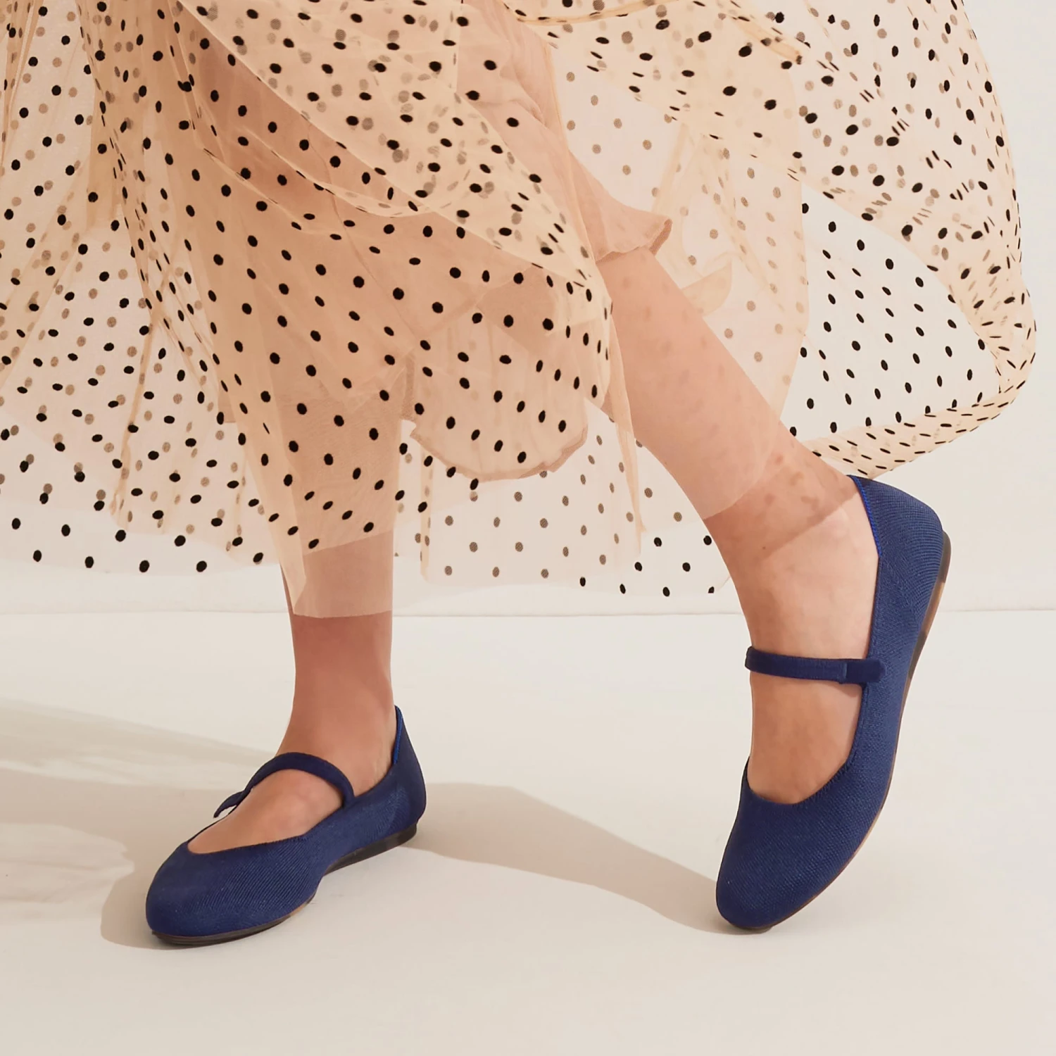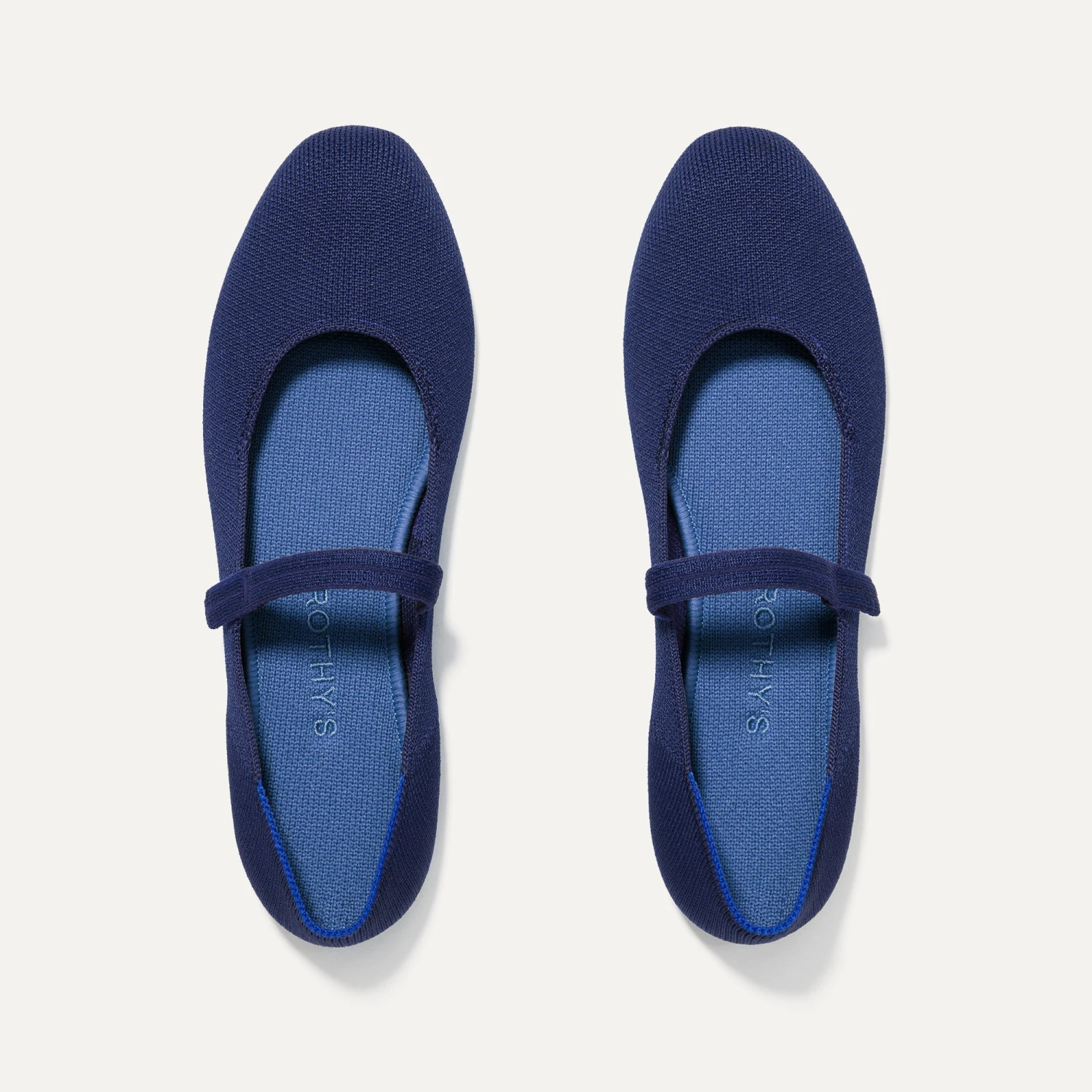 - Features a slim, flexible strap in dark navy that keeps your feet secure.