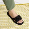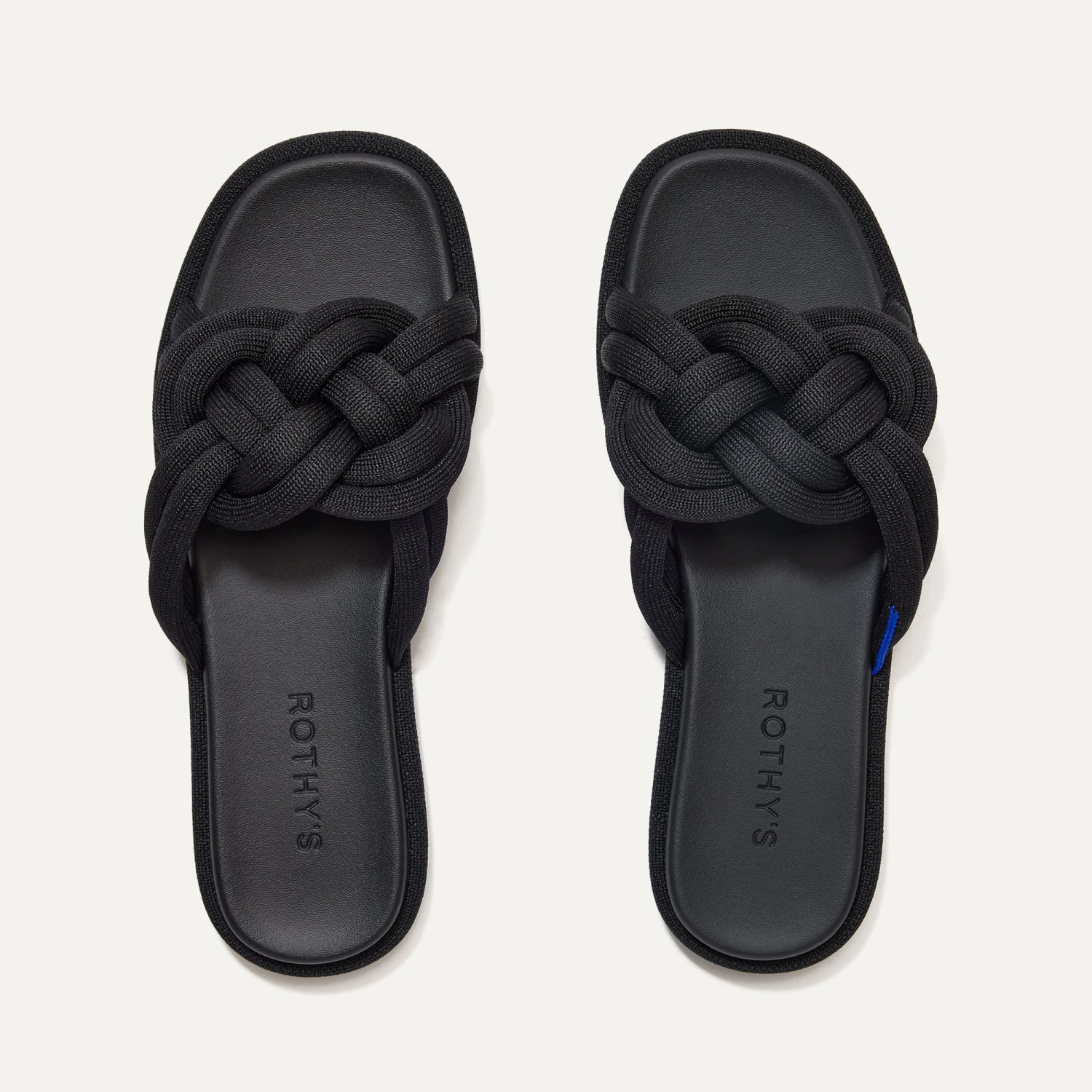 - Cushioned, interwoven straps in black for a luxe style you can wear all day.