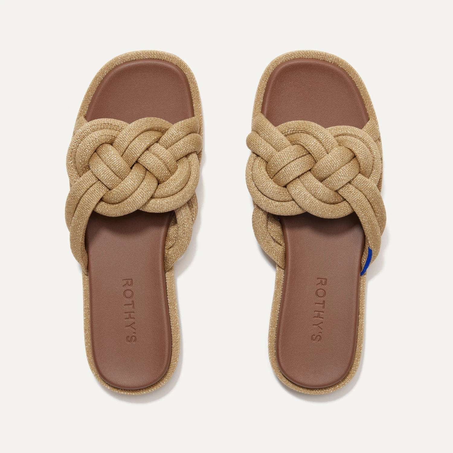 - Cushioned, interwoven straps in a shimmery metallic bronze for a luxe style you can wear all day.