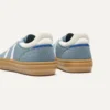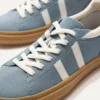 - Flexible upper in dusk blue with sporty ivory stripes.