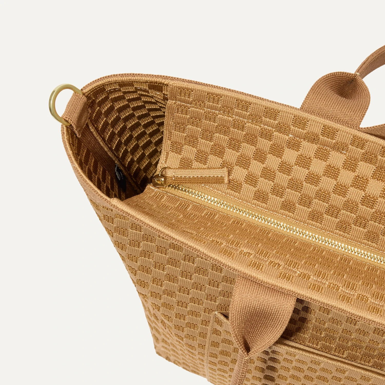 - Lightweight, flexible design in a warm brown basketweave pattern.