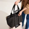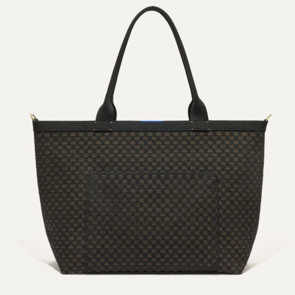 - Lightweight, flexible design in a black and camel basketweave pattern.